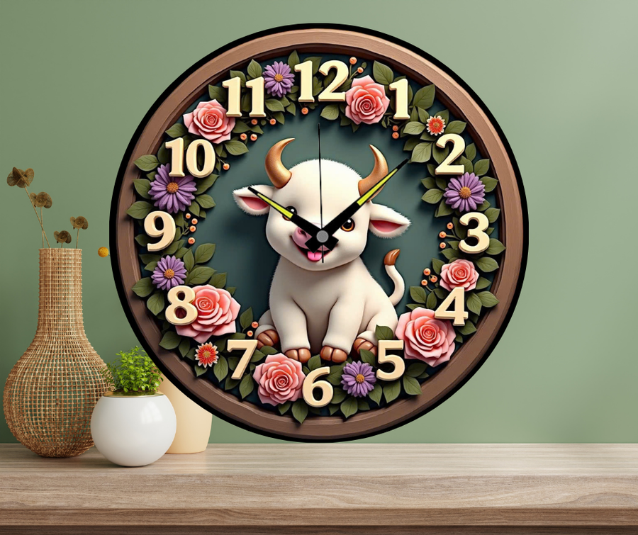 Đồng hồ treo tường trang trí 12 con giáp mẫu dễ thương ( tuổi sửu)